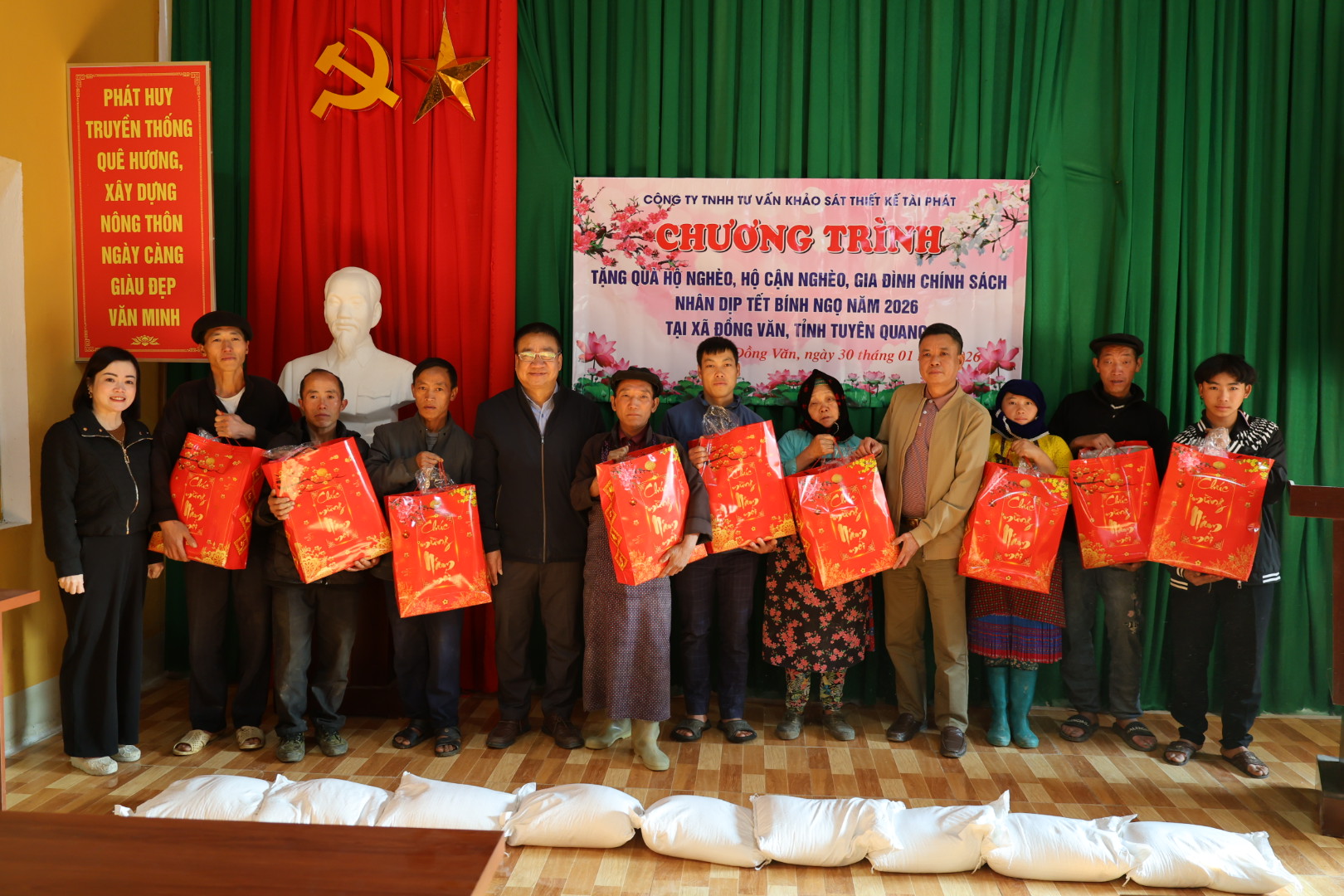 Tại chương trình, Công ty TNHH tư vẫn khảo sát thiết kế Tài Phát trao tặng 100 xuất quà Tết cho 100 hộ nghèo tại các thôn Đậu Chúa, Quán Dín Ngài và Nhìu Lủng xã Đồng Văn. Mỗi suất quà trị giá 600 nghìn đồng, với tổng giá trị 60 triệu đồng.