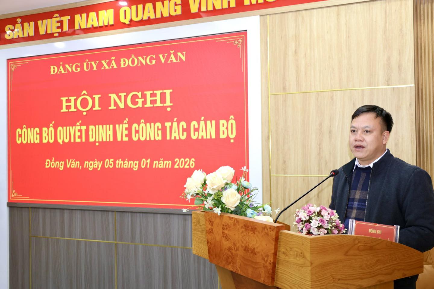 Tại Hội nghị, lãnh đạo Ban Xây dựng Đảng đã công bố Quyết định về Điều động đồng chí Vương Thị Kim Thoa, Ủy viên Ủy ban Kiểm tra Đảng ủy xã Đồng Văn, đến nhận công tác tại Văn phòng Đảng ủy xã và bổ nhiệm giữ chức vụ Phó Chánh Văn phòng Đảng ủy xã Đồng Văn, kể từ ngày 01 tháng 01 năm 2026, thời gian bổ nhiệm giữ chức vụ không quá 5 năm.