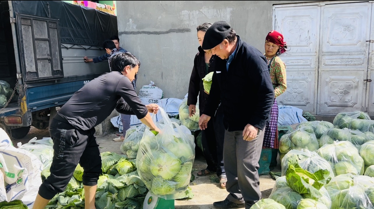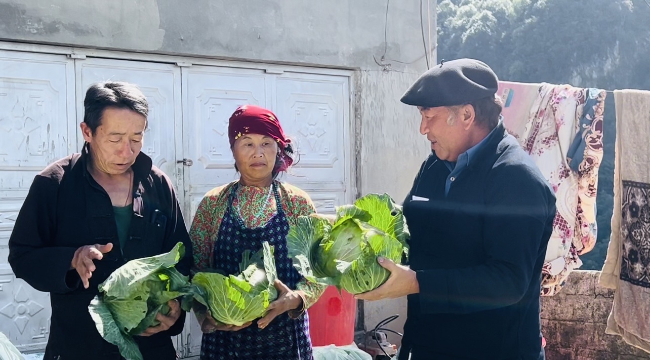 Ông Pó tuyên truyền cho người dân mở rộng diện tích cây bắp cải