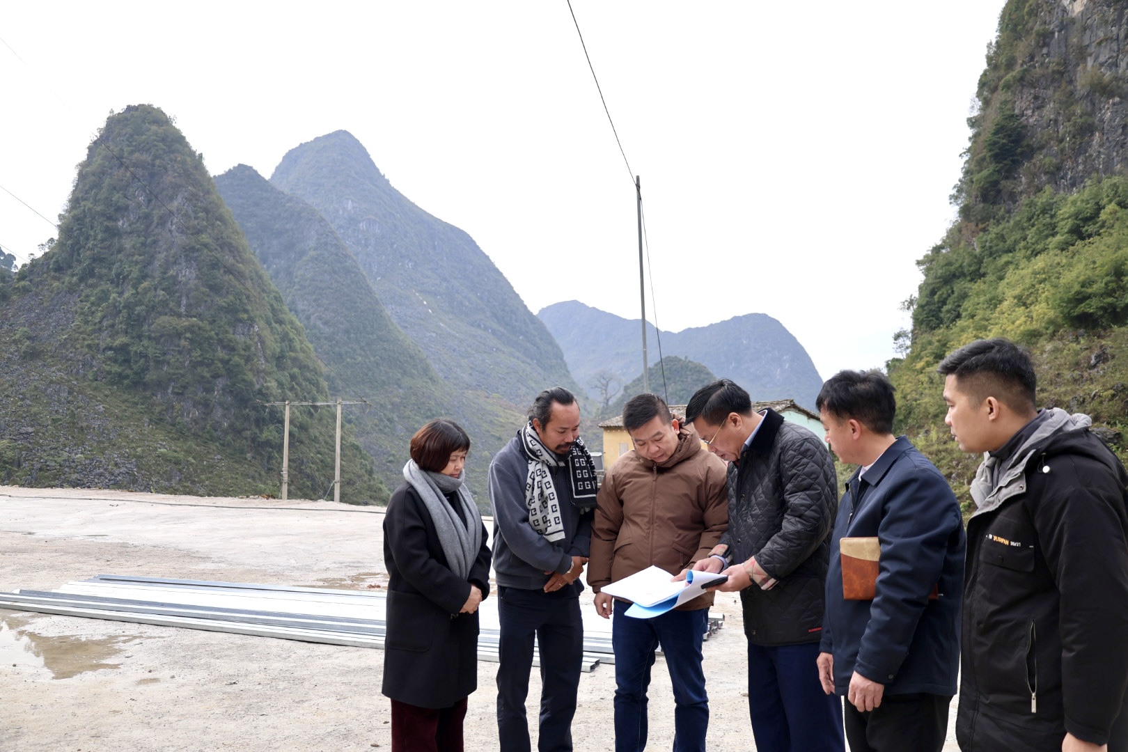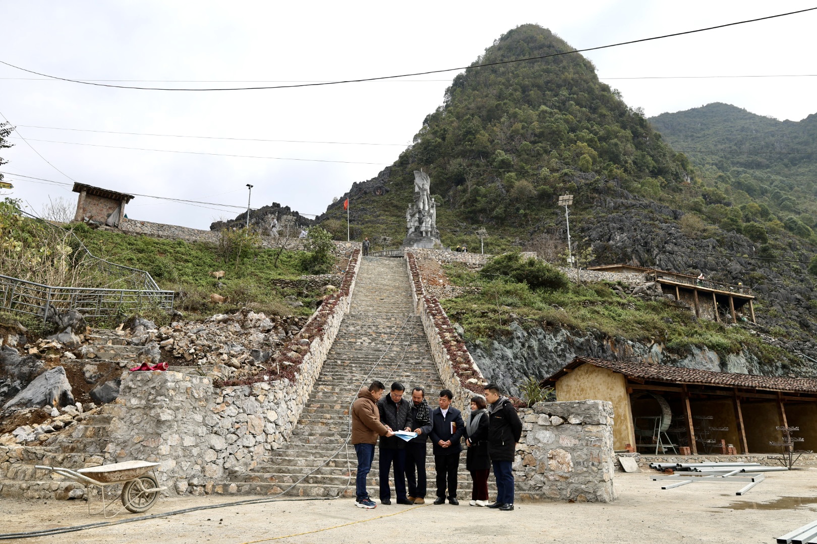 Lãnh đạo xã Đồng Văn kiểm tra tiến độ thi công, cải tạo, chỉnh trang điểm nhân du lịch Tượng đài Thanh niên xung phong