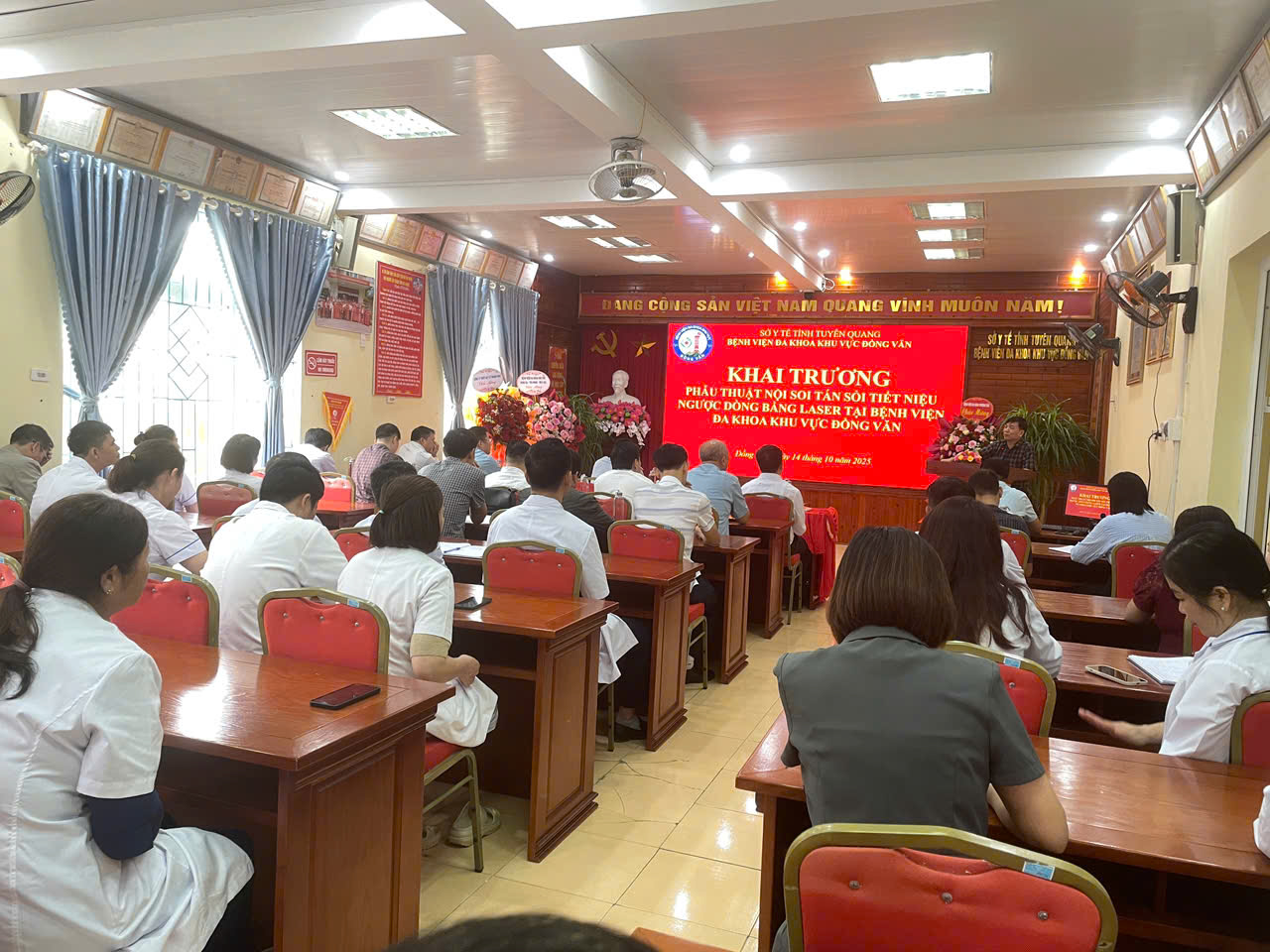 Trong khuôn khổ chuyến công tác, đoàn công tác Sở Y tế đã dự Lễ khai trương phẫu thuật nội soi tán sỏi tiết niệu ngược dòng bằng Lasser tại Bệnh viện đa khoa khu vực Đồng Văn./.