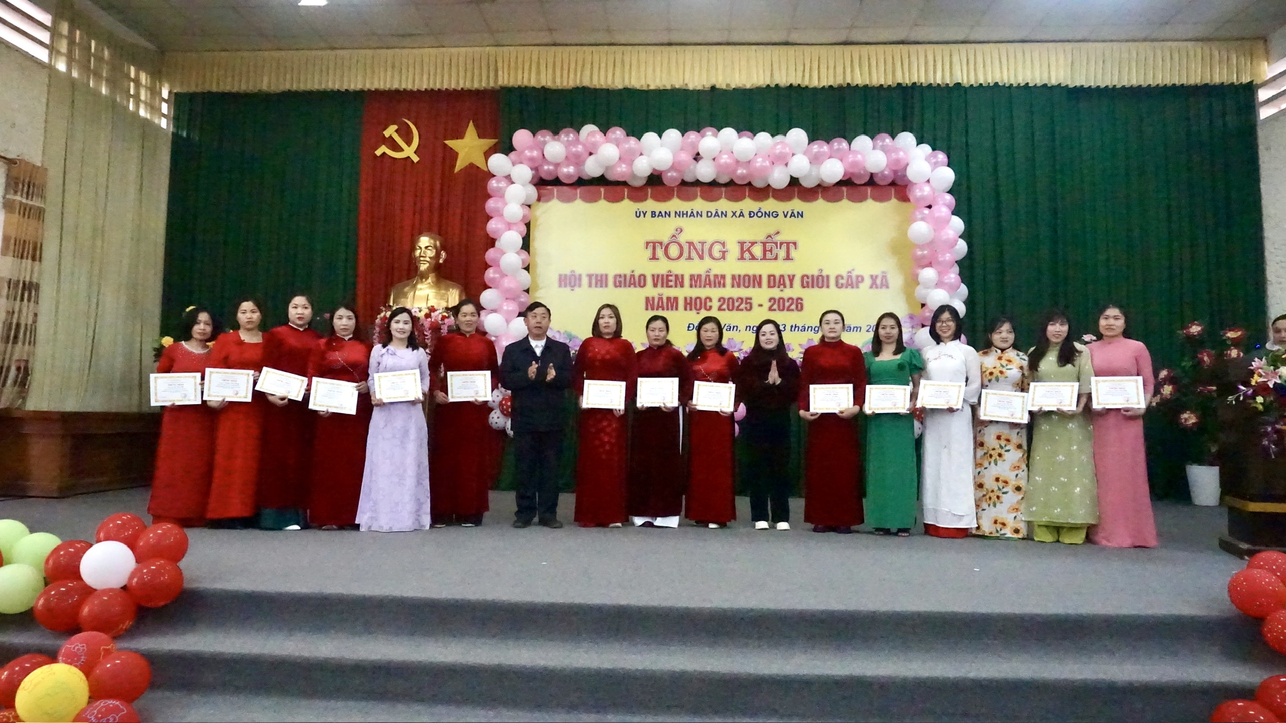 Sau hai tuần với sự tham gia của 42 giáo viên đến từ 05 trường mầm non trên địa bàn xã. Tại buổi lễ tổng kết, Ban tổ chức đã trao Giấy chứng nhận Giáo viên dạy giỏi cấp xã bậc học mầm non năm 2025-2026 cho 30/42 giáo viên tham dự, đồng thời ghi nhận sự nỗ lực, sáng tạo và tâm huyết của đội ngũ giáo viên mầm non trong suốt quá trình Hội thi diễn ra. Hội thi là dịp để các thầy cô thể hiện năng lực chuyên môn, tinh thần sáng tạo trong giảng dạy và lan tỏa phong trào thi đua “Dạy tốt – Học tốt” trong toàn ngành giáo dục địa phương.