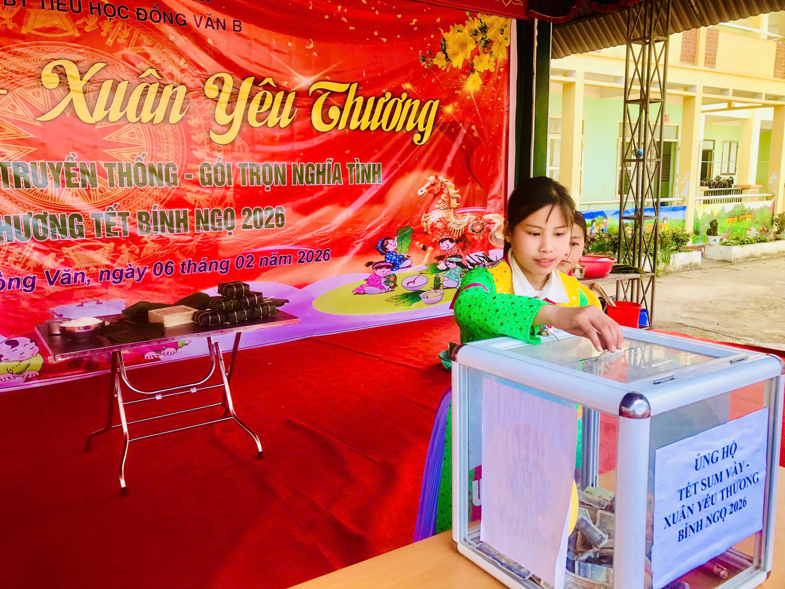 Đây cũng là dịp nhà trường lồng ghép giáo dục kỹ năng sống, giúp học sinh rèn luyện tính cẩn thận, khéo léo, tinh thần hợp tác và ý thức giữ gìn vệ sinh an toàn thực phẩm. Bên cạnh đó, chương trình còn kết hợp tổ chức hoạt động quyên góp ủng hộ “Tết ấm cho em”, kêu gọi cán bộ, giáo viên, phụ huynh và học sinh chung tay sẻ chia với các bạn có hoàn cảnh khó khăn. Những phần quà tuy giản dị nhưng chứa đựng tình yêu thương, sự quan tâm và trách nhiệm của tập thể nhà trường. Không khí hội thi diễn ra sôi nổi, đoàn kết, tạo nên những khoảnh khắc đáng nhớ cho thầy và trò.
