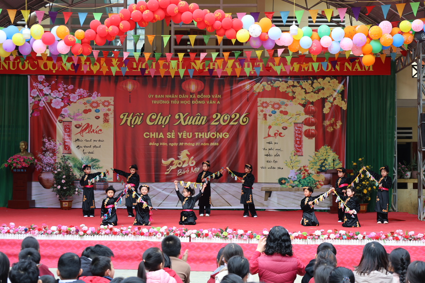 Tại lễ khai mạc Hội chợ Xuân, các khối lớp đã mang đến các tiết mục văn nghệ, mang đậm sắc xuân, gắn với bản sắc văn hoá truyền thống của các dân tộc trên Cao nguyên đá Đồng Văn, tạo không khí vui tươi, phấn khởi cho chương trình.