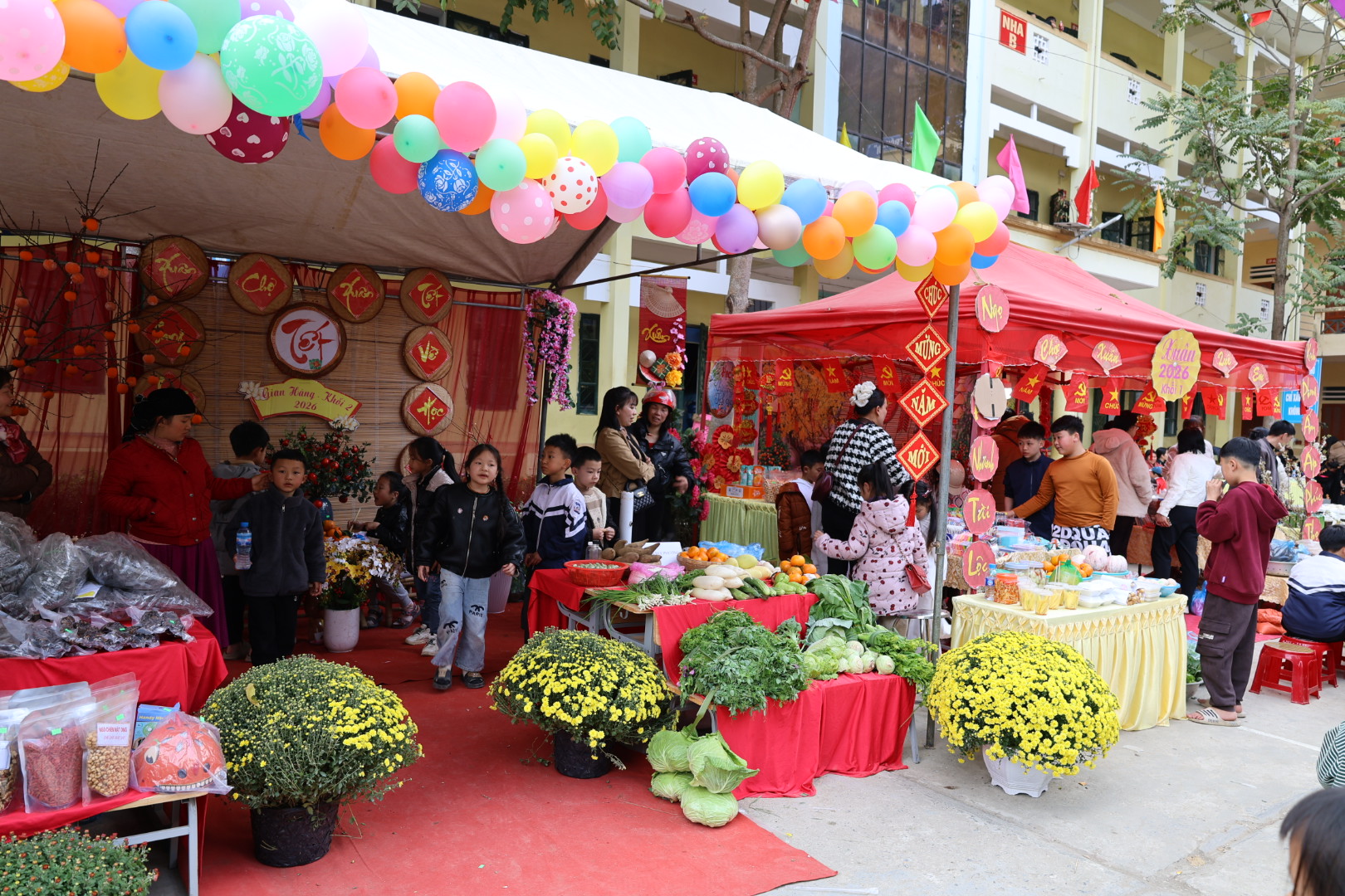 Tại đây, nhiều gian hàng mang đậm hương vị Tết cổ truyền được trưng bày và giới thiệu như: bánh chưng, bánh tẻ, các loại mứt Tết, sản phẩm thủ công và trò chơi dân gian. Hoạt động góp phần giáo dục học sinh hiểu biết về phong tục Tết truyền thống, đồng thời tạo sân chơi bổ ích, tăng cường tinh thần đoàn kết, trải nghiệm kỹ năng sống cho các em.