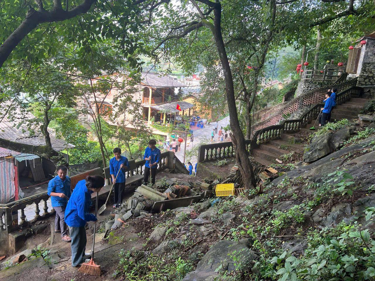 Bí thư Đảng uỷ xã kiểm tra các điểm sạt lở tại thôn Nhèo Lủng và thôn Xóm Mới